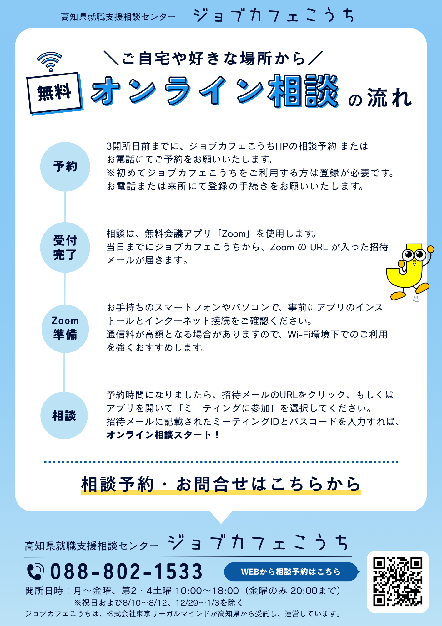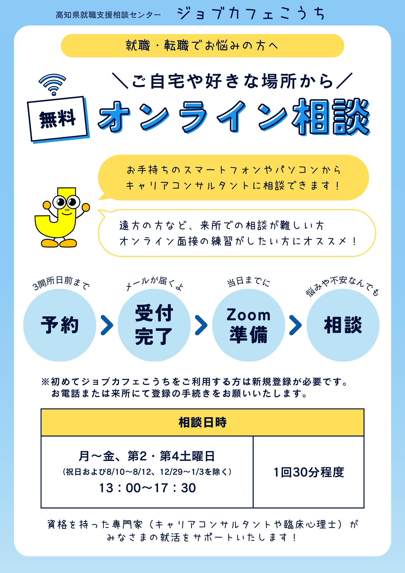 ジョブカフェこうちの「オンライン相談」をご利用ください!