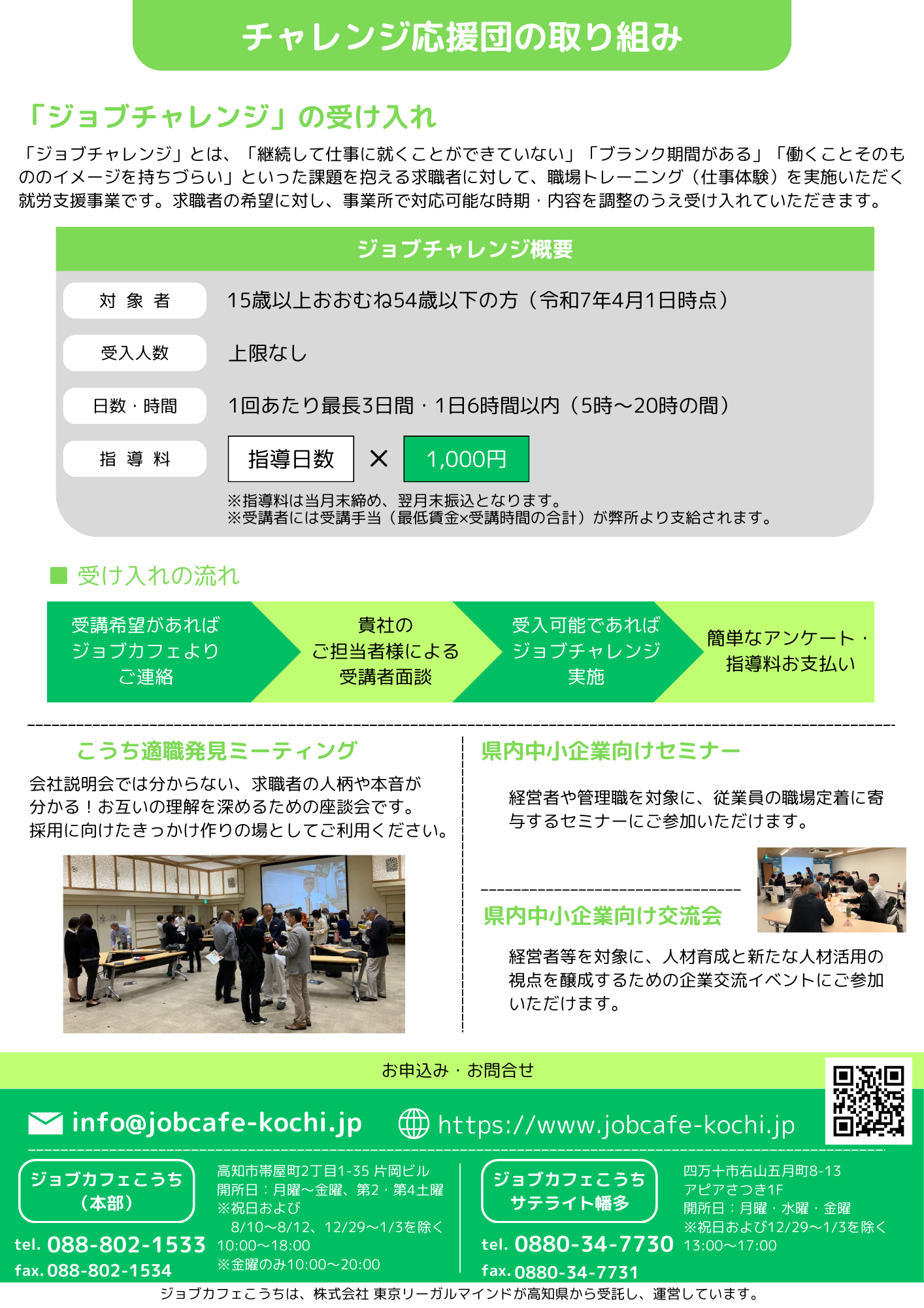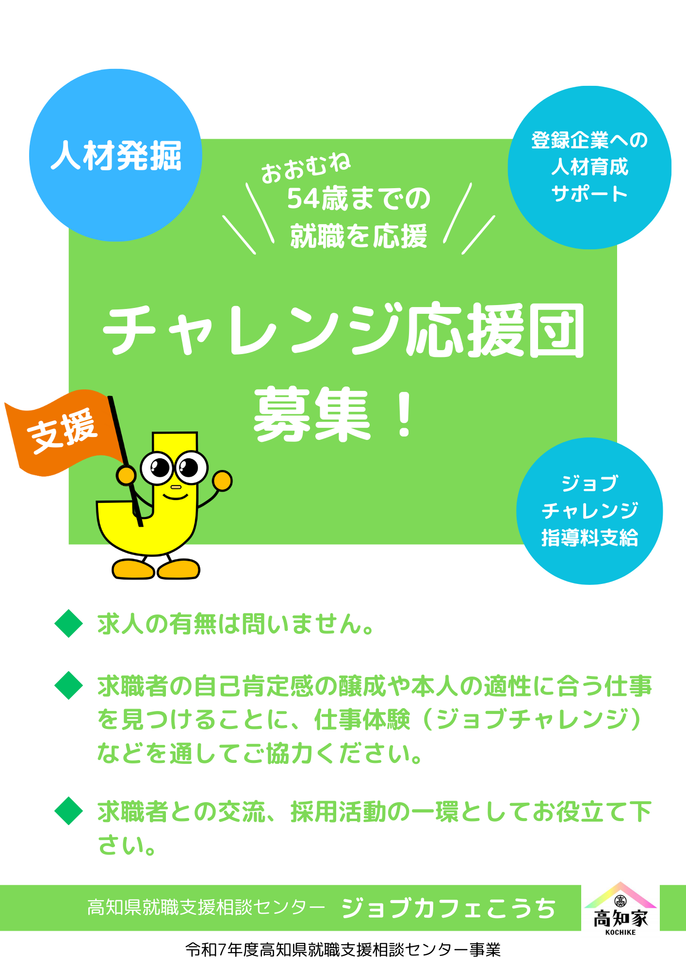 「チャレンジ応援団」とは、ジョブカフェ利用者の雇用や育成にご理解のある県内企業ネットワークです。