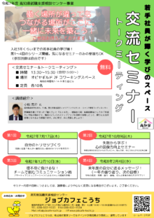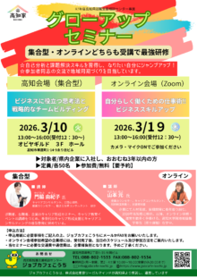 | 新社会人向けセミナー (交流セミナー) | 新社会人(新入社員および入社3年以内の社員)を対象に、社会人基礎力の向上および異業種間交流を通じた「地域同期」づくりによる離職防止を目的としたセミナーを行います。 |