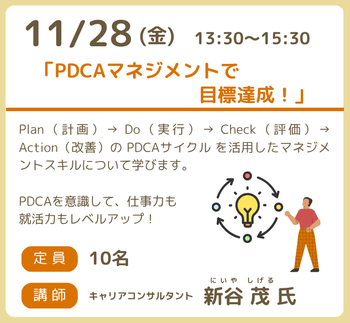 少人数セミナー 11/28 「PDCAマネジメントで目標達成!」
