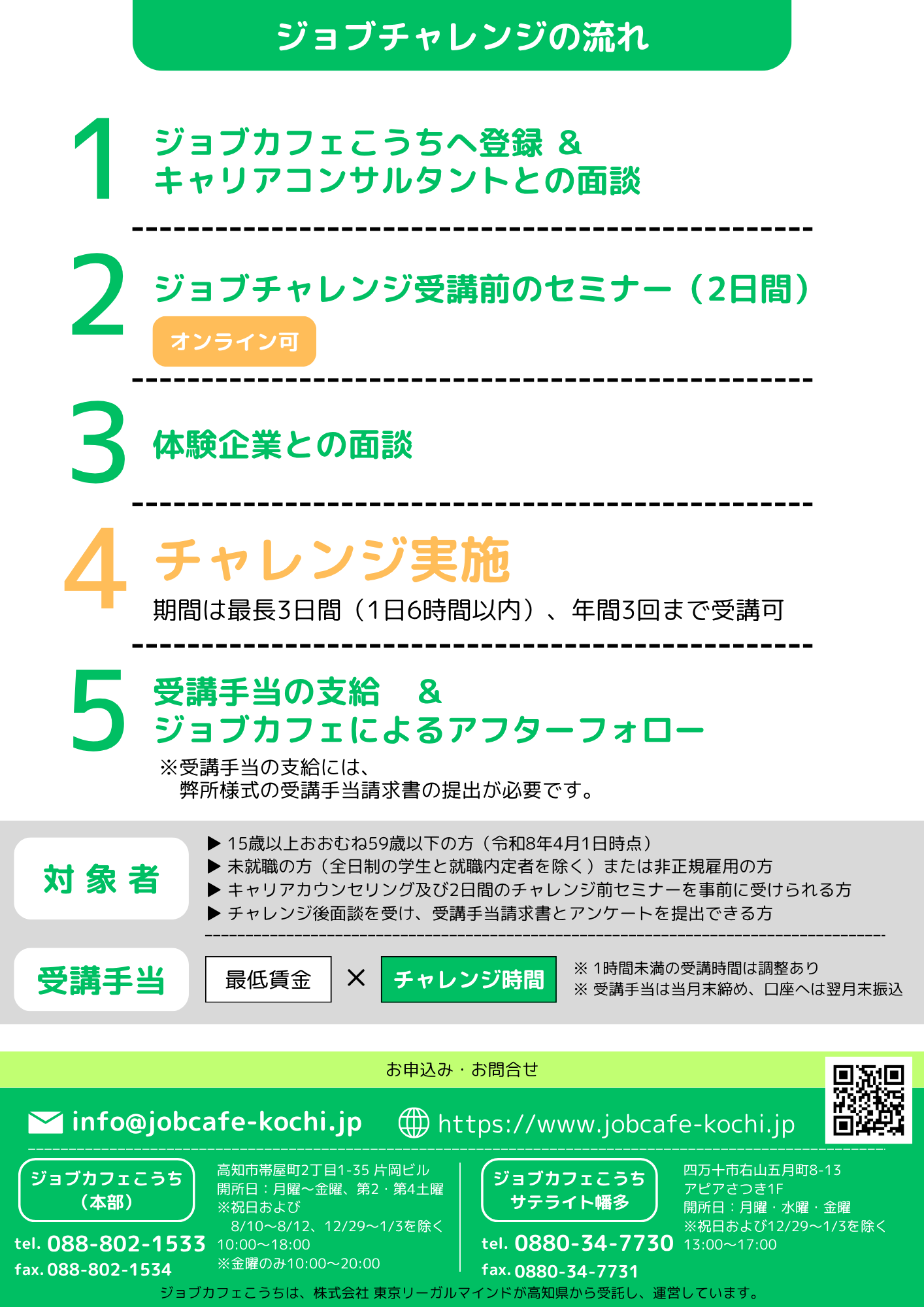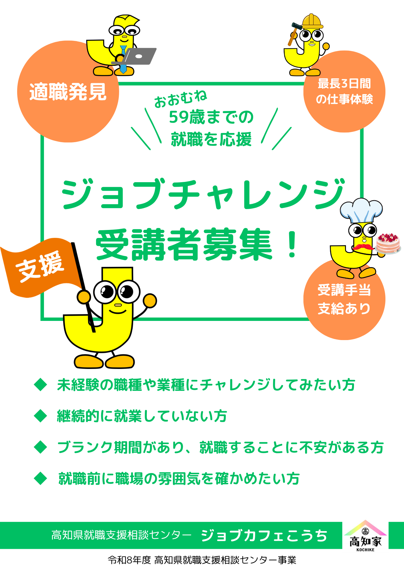 ジョブカフェこうちの「ジョブチャレンジ」をご活用ください!