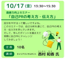 少人数セミナー 10/17「自己PRの考え方・伝え方」
