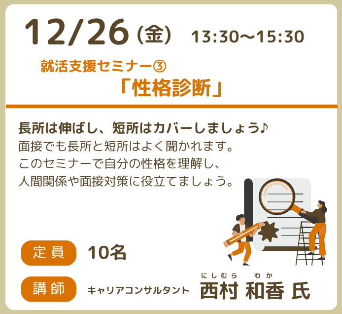 ※当セミナーへの参加は、雇用保険の求職活動実績として認定されます。