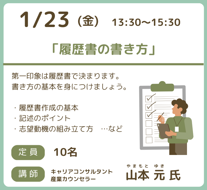 ※当セミナーへの参加は、雇用保険の求職活動実績として認定されます。