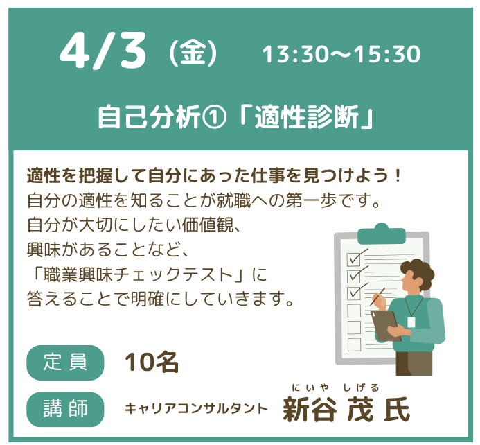 少人数セミナー 4/3 自己分析①「適性診断」