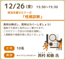 | セミナー・イベント | ・就職内定者向けセミナー ・少人数セミナー |